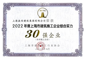森信集團再次榮登“上海施工企業(yè)綜合實力30強”